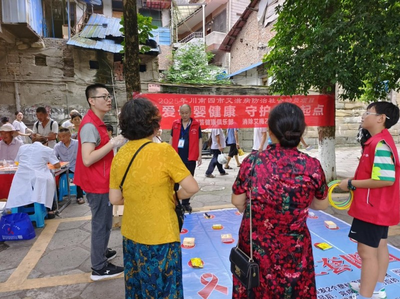 2025年8月23日,威远县馨芸健康俱乐部在古城社区滨河公园段开展消除母婴传播干预检测活动。为育龄妇女和青少年普及性病艾滋病防治知识,消除对感染者的偏见,反对家庭暴力,强调社会公平与健康权利,并为育龄妇女提供艾梅乙免费检测服务。 威远馨芸在活动现场通过套圈答题、一对一咨询等形式,开展消除艾梅乙母婴传播知识宣传,针对艾滋病防治及生活中的常见问题,进行宣传和答疑。通过开展寓教于乐的宣传活动,强化宣传内容调动现场气氛。活动现场吸引了一名青少年主动加入宣传志愿者队伍,活学活用,为身边的人宣传艾滋病防治知识。