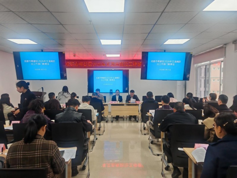 为深入贯彻落实省市艾滋病防治工作要求,扎实做好全区2026年艾滋病防治工作,高质量完成政府目标考核任务,2026年3月31日,区卫生健康工作领导小组办公室在区卫健局召开2026年艾滋病防治工作部门联席会。郫都区卫健局党组成员、区疾控中心主任黄小芳,区卫健局、区委统战部(校地办)、区融媒体中心、区文体旅局、区公安分局、区教育局、区人社局、区商务局、区住建局、区综合执法局、区交通局、区经信局、高新技术产业园区相关科室负责人,各街道(镇)民生办主任,各区属及驻区医疗机构、部分民营医疗机构分管领导,各街道社区卫生服务中心(镇卫生院)公卫所副所长,共计50余人参会。 本次会议由区卫健局疾病预防与职业健康科科长夏佳龙主持。会上,区卫健局党组成员、区疾控中心主任黄小芳首先介绍了郫都区2025年艾滋病防治工作取得的成效,并对2026年国家省市艾滋病防治工作重点任务进行部署。 随后,区疾控中心副主任谢天讲解了2025年郫都区艾滋病疫情形势,指出当前郫都区艾滋病疫情形势严峻,病例基数大,防控难度较高;区卫健局疾病预防与职业健康科工作人员吴林容介绍了2026年精准防控方案,提及将围绕精准防控相关行动推进工作;区疾控中心艾结科科长蒋春梅通报了2025年扩大检测工作完成情况以及2026年扩大检测方案。 最后,黄主任肯定了2025年郫都区艾滋病防治部门协同工作取得的成效,并展望2026年各相关部门能继续携手共进,共同做好郫都区艾滋病防治工作。 此次会议进一步加强了部门、街道(镇)、医疗机构之间的联防联控合力,为郫都区2026年艾滋病防控工作奠定了坚实基础。 成都市郫都区疾病预防控制中心供稿