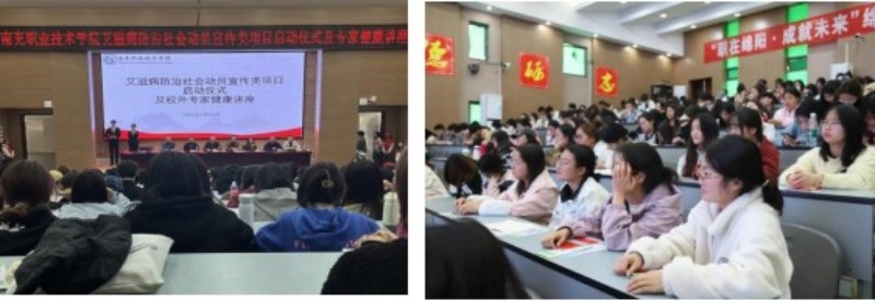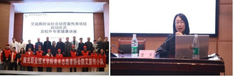 南充职业技术学院青年志愿者协会在学院后管处的支持和多部门指导下,成功申请中央财政补助艾滋病防治社会动员青少年学生宣传类项目。3月24日,由南充职业技术学院后管处主办,青年志愿者协会承办,在利奥楼B109会议室开展艾滋病防治社会动员青少年学生宣传项目启动仪式及专家健康讲座活动。南充市重传办艾管办主任何川、南充市疾控性艾所所长张芹、高坪区疾控中心副主任彭麒龙、南充职业技术学院后管处处长何绍林、财务处处长何品帆、校团委副书记(主持工作)刘姝、后管处副处长翟启航、高坪区妇幼保健院保健科科长付玖洋等领导、专家和市区两级相关工作人员及学校老师出席了本次活动。校团委青年志愿者及各学院学生代表300余人参加了本次活动。