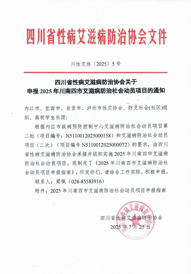 四川省性病艾滋病防治协会关于申报 2025 年川南四市艾滋病防治社会动员项目的通知