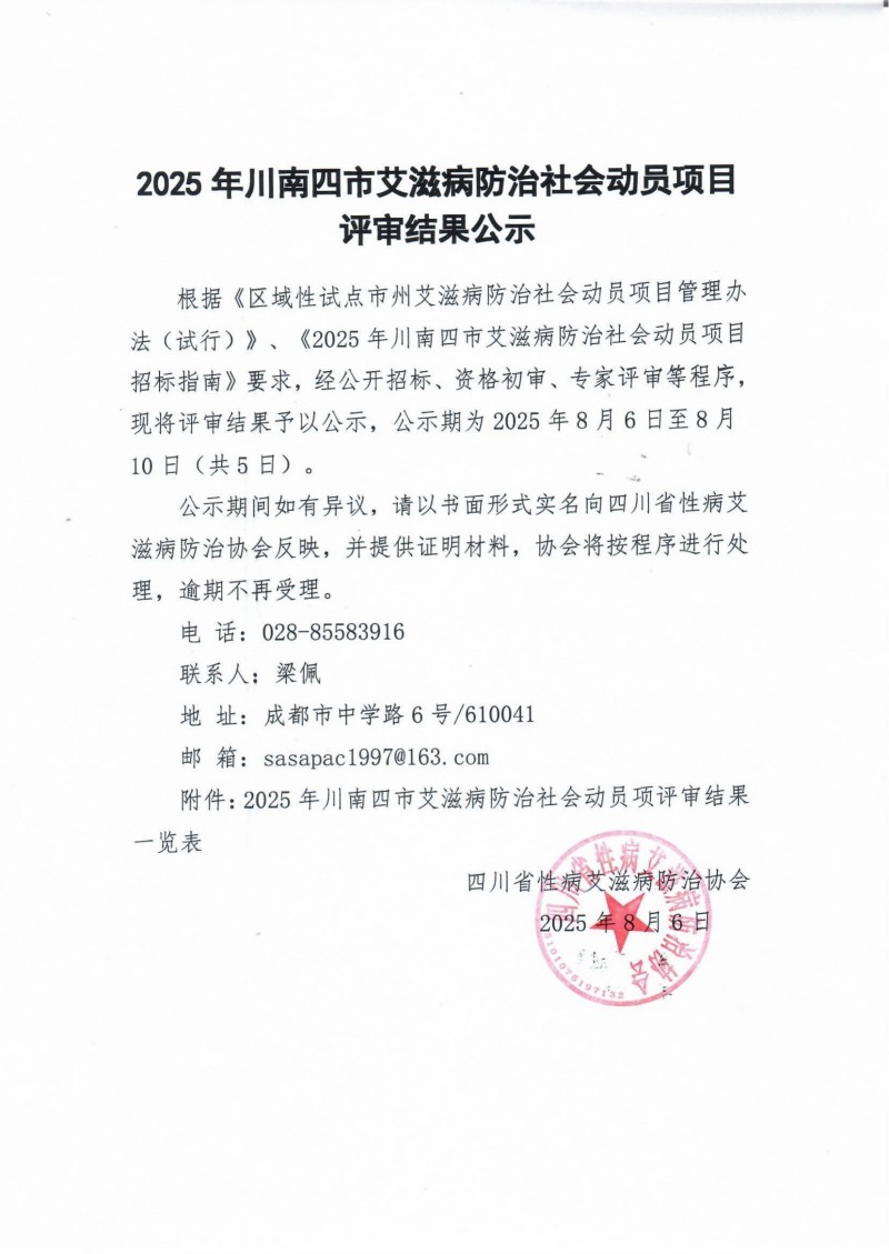 2025年川南四市艾滋病防治社会动员项目第一批评审结果公示