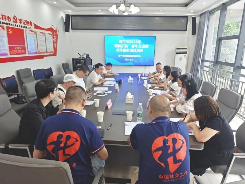 2025年8月21日,在德阳市第十届社会组织公益创投暨新时代“天府‘银龄行动’”老年志愿服务活动经费的支持下,德阳同道健康互助家园在绵竹市疾病预防控制中心二楼会议室组织召开了《“银龄护航”老年艾滋病关怀服务项目》志愿者培训暨项目协调会议,来自绵竹市民政局、绵竹市疾控中心、艾滋病抗病毒治疗点的专家老师以及德阳爱之帆的志愿者共计17人参加了本次会议。 会议开始,绵竹市疾控中心性艾科科长杨九洲介绍了绵竹地区老年艾滋病感染者总体情况,杨九洲强调,希望我们社区、乡镇治疗点的老师全力支持配合“银龄护航”老年艾滋病关怀服务项目的开展。项目的顺利推进需要各方通力协作、资源整合,特别是老年感染者参与项目服务过程中的隐私保护、情感支持与社会融入等问题要引起高度重视。