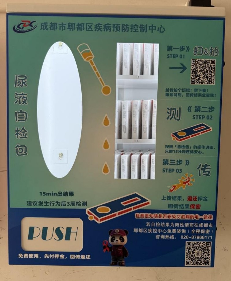 五、 增设自检试剂发放机,拓展检测服务可及性 区疾控中心在部分高校试点,设置16台艾滋病自我检测试剂发放机。学生可通过设备便捷、匿名获取自检试剂,有助于消除检测顾虑,提高检测意愿,实现早发现、早诊断。此举是对现有检测服务体系的有效补充,拓展了检测服务的可及性和灵活性,受到学生欢迎。