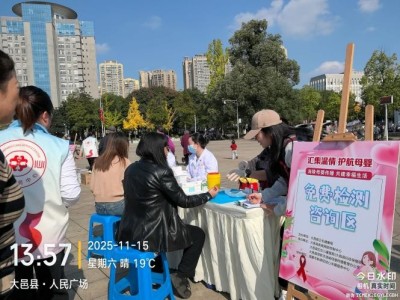2025年11月15日下午,大邑县人民广场暖意融融,由大邑县卫生健康局主办,大邑县疾病预防控制中心、大邑县妇女儿童医院(大邑县妇幼保健院)、大邑县预防艾滋病母婴传播管理办公室承办,成都市新津区初心关爱服务中心协办的“汇聚温情,护航母婴”主题宣传活动在此顺利举行。签名墙、咨询台、游戏区人头攒动,一场集知识普及、公益服务与互动体验于一体的活动,为冬日注入了别样温暖。 活动伊始,签名墙前便排起长队。群众们郑重提笔,在墙上签下姓名,用一笔一划许下“消除母婴传播,反对家庭暴力,关爱未成年人,消除歧视,维护妇女儿童权益,促进性别平等”的承诺。字迹层层叠叠,汇聚成守护妇女儿童权益的坚定力量。一旁的趣味活动区同样热闹,套圈圈、飞行棋等游戏中,家长与孩子协作闯关,答题环节巧妙融入母婴阻断、消除歧视、反家暴等知识;亲子绘画现场,孩子们用画笔勾勒“温暖家庭”,手工DIY区域,群众答题通过后可亲手制作香囊,在一针一线中感受趣味与意义,欢乐中埋下关爱与尊重的种子。 “免费咨询检测区”是活动核心阵地。群众争相领取宣传资料。县妇女儿童医院专业医生团队更是忙碌不停,不仅免费为群众提供艾滋病、梅毒、乙肝和丙肝抗体检测,还耐心解答群众关于消除母婴传播的各类疑问,详细讲解母婴传播途径与阻断措施,打消了艾滋病、梅毒和乙肝感染孕产妇的顾虑。 初心关爱的志愿者们穿梭其间,发放礼品、引导秩序、协助检测,随时为群众答疑解惑,成为活动中亮丽的风景线。一位育龄妇女感慨:“这样的活动太实用了,既学到消除母婴传播知识,又知道遇到家暴该如何保护自己”。 这场活动不仅让母婴阻断、消除歧视、反家暴理念深入人心,更搭建起沟通桥梁,为妇女儿童健康保驾护航。