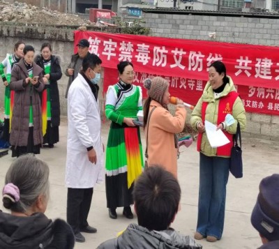 活动现场设立宣传主阵地,通过悬挂“筑牢禁毒防艾线 共建共享健康生活”“凝聚社会力量 消除艾梅乙母婴传播孕育未来希望”等主题横幅。疾控专家以通俗易懂的彝汉双语,细致讲解了“四病”防治的核心知识,重点强调艾滋病、梅毒、丙肝的性传播、血液传播、母婴传播风险,以及肺结核的呼吸道传播特性,纠正日常接触会传染认知误区,引导村民树立“早检测、早诊断、早治疗”的健康理念。医护人员现场为村民提供了“一对一”咨询服务,惠及30余人;同时,还为40余人进行了血压、血糖检测,并收集了40余份健康问卷。为增添活动现场的趣味性,特别设置了互动环节——知识有奖问答,通过“答题赢礼品”的形式,有效激发了村民的参与热情,使他们在轻松愉快的氛围中巩固了防艾知识。县卫健局艾防宣传队志愿者们为村民表演刮打板 “听党话、跟党走 艾防宣传进万家”、 舞蹈“我们在唱卡莎莎”等优秀文艺节目。
